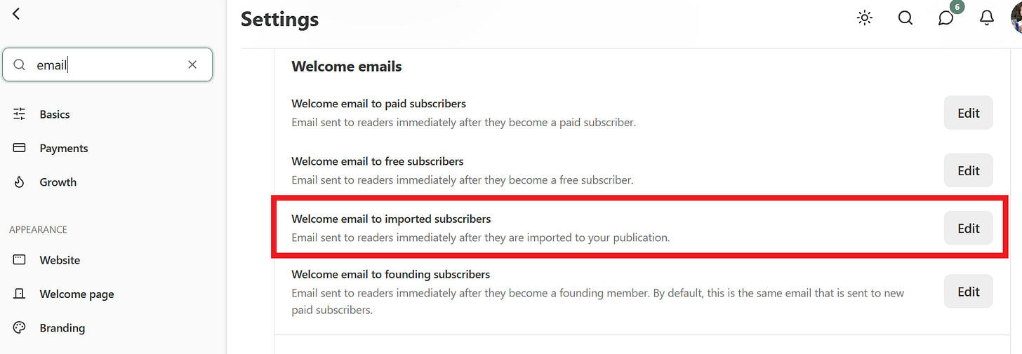 Of course, I did the opposite. I exported my list from one Substack, imported it into the new one, and created a custom welcome email specifically for imported subscribers. And that is where it all fell apart. Read on for the long version of the story.
