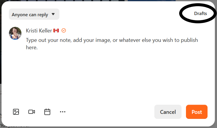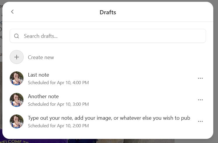 Another little feature - if you want to see a list of your scheduled notes, you can click on the “drafts” link in the top right corner of your note draft and a list will pop up.
