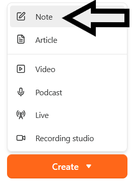 Find your orange “Create” button from whichever screen you’re on, and select Note.