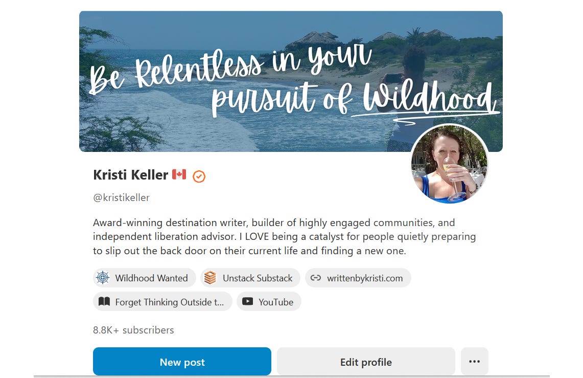 They have also introduced a new addition to your branding kit. They’re calling it a cover image, and it allows Substackers to spice up our personal profiles…totally separate from our publications.